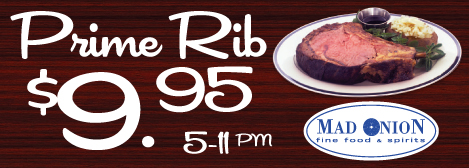 Try the prime rib for $9.95, and enjoy with a nice glass of wine!